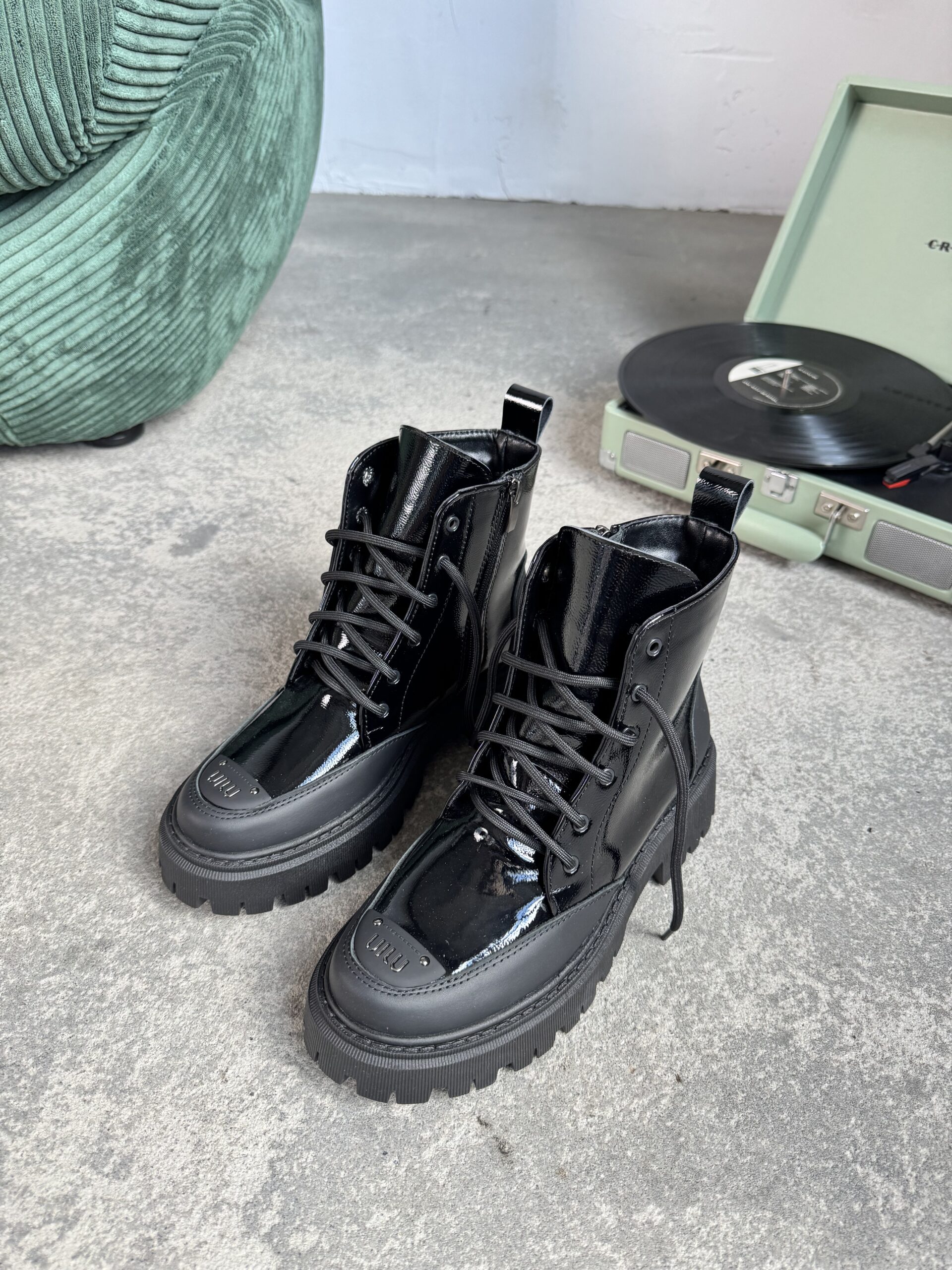 Черевики чорний лак на хутрі , Арт 605